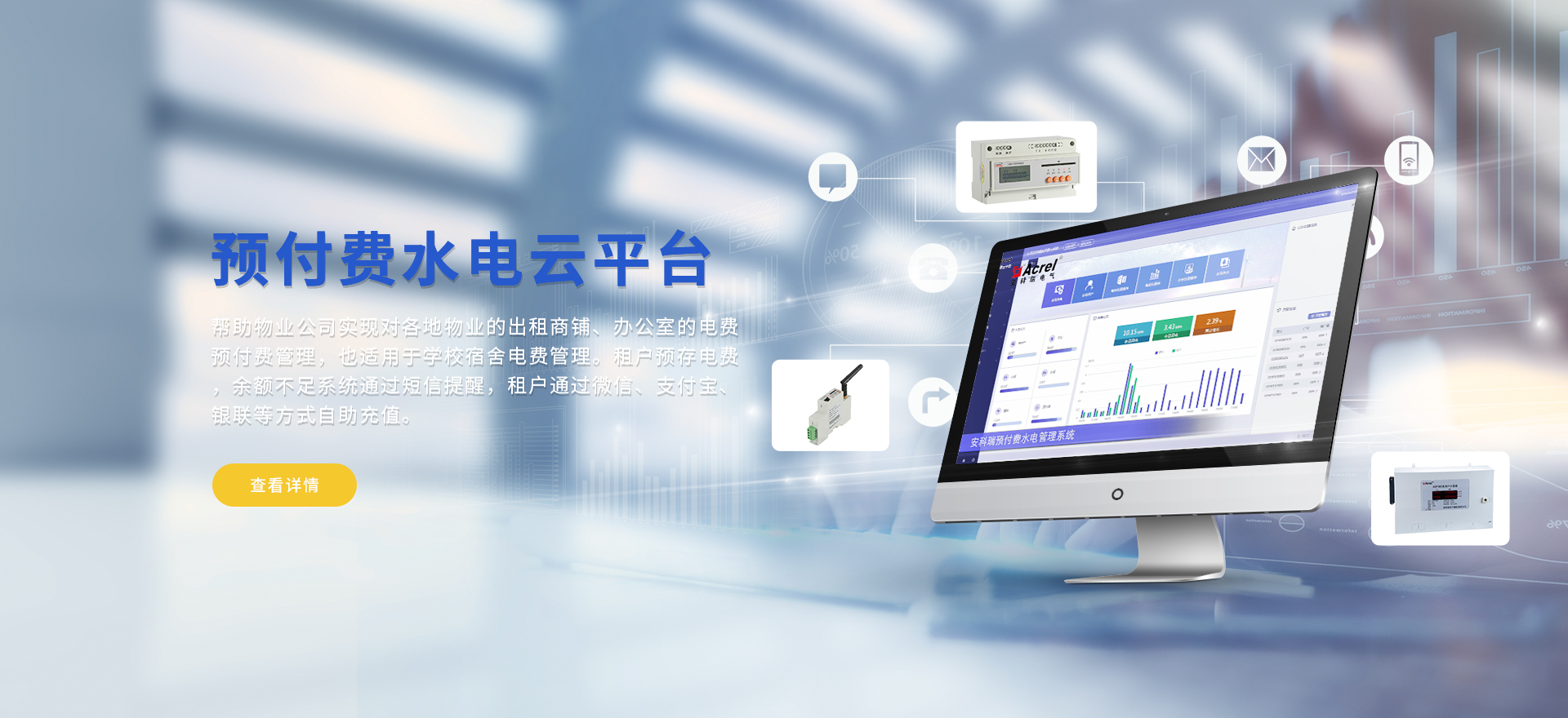 安科瑞提供的解決方案包括Acrel-EIoT能源物聯網云平臺變電所運維云平臺、安全用電管理云平臺、環保用電監管云平臺、智慧消防云平臺、能源管理云平臺、工業企業能源管控平臺、遠程預付費云平臺、餐飲油煙監管云平臺、電動汽車/電瓶車充電樁收費管理云平臺、電力監控/無線測溫系統、電能質量治理系統、電氣火災監控系統、消防設備電源監控系統、防火門監控系統、應急照明和疏散指示系統、智能照明控制系統、醫用隔離電源絕緣監測系統等,幫助用戶實現能源智能化、可視化、精細化管理,提高用能效率和用能安全,為企業節能降耗和實現能源數字化建設提供數據服務。